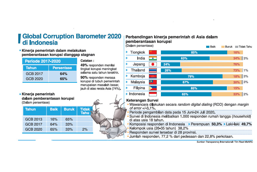 BERBEDA dari riset-riset sebelumnya, pada Global Corruption Barometer Asia 2020 Transparency International memasukkan indikator baru, yakni sextortion.